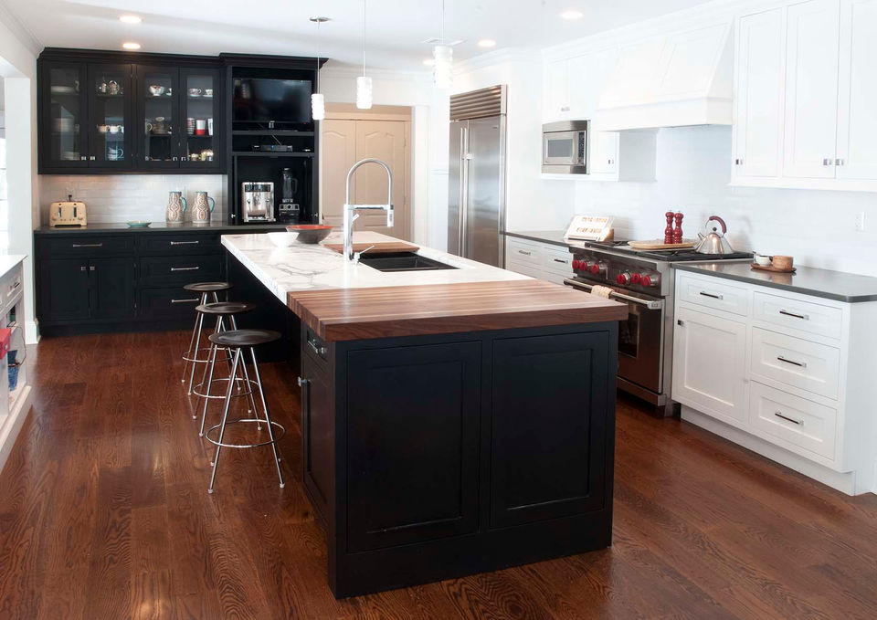 After seeing the Houzz kitchen, a neighbor reached out to update their home. Although they had an architect and builder, they hired PHD to design the interior details—later calling it “the best money spent.” The client envisioned a black-and-white kitchen with pops of color inspired by a multicolored coffee table purchased in Paris. A shared love of orange made the collaboration especially fun.